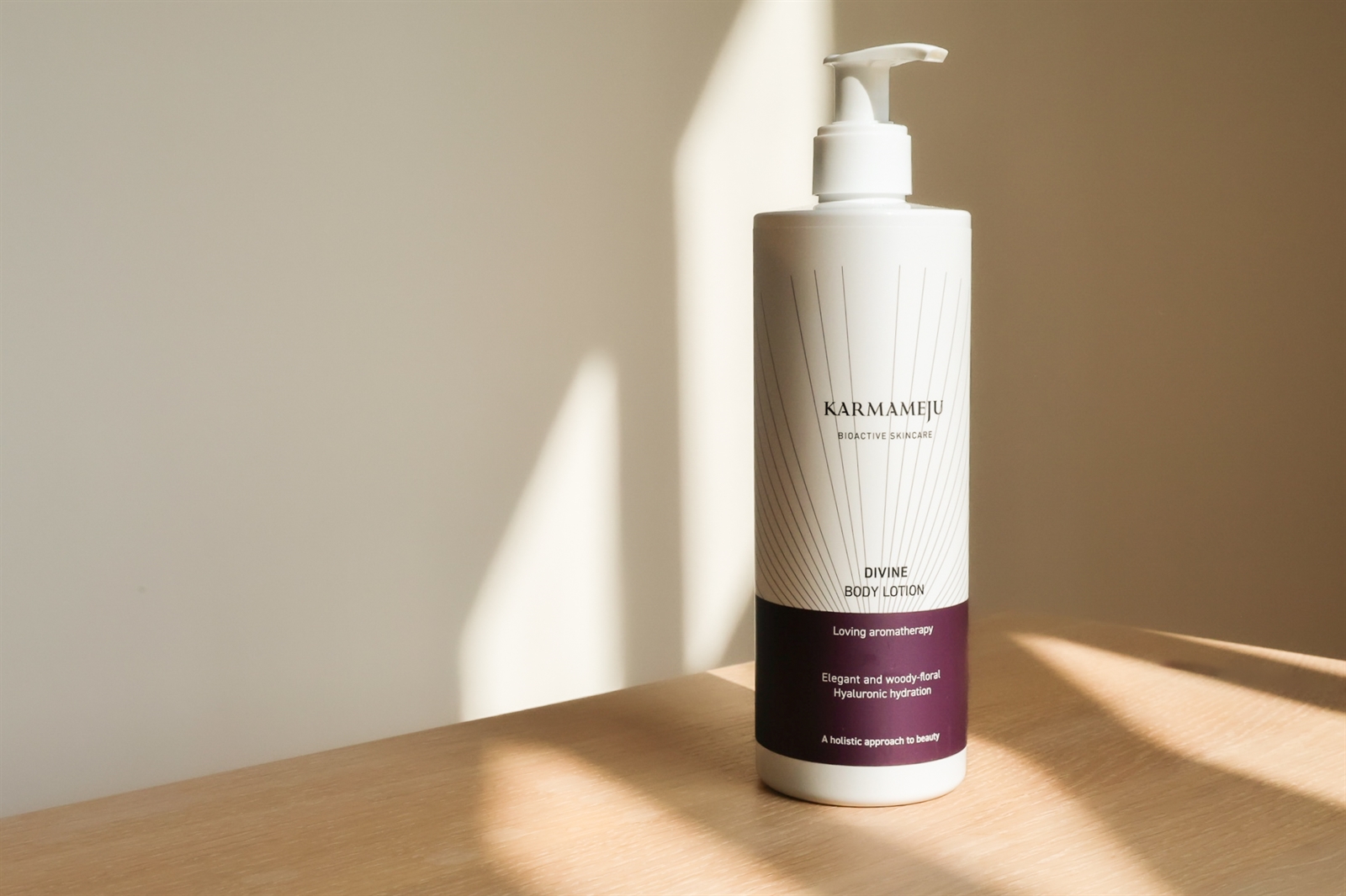Divine body lotion indeholder certificerede økologiske ekstrakter, dynamiske næringsrige aktive plantestoffer og rene æteriske olier.