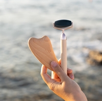 En Gua Sha-sten – en traditionel massageteknik fra Østen, der løsner spændinger, fremmer lymfedrænage og kan give huden mere glød.