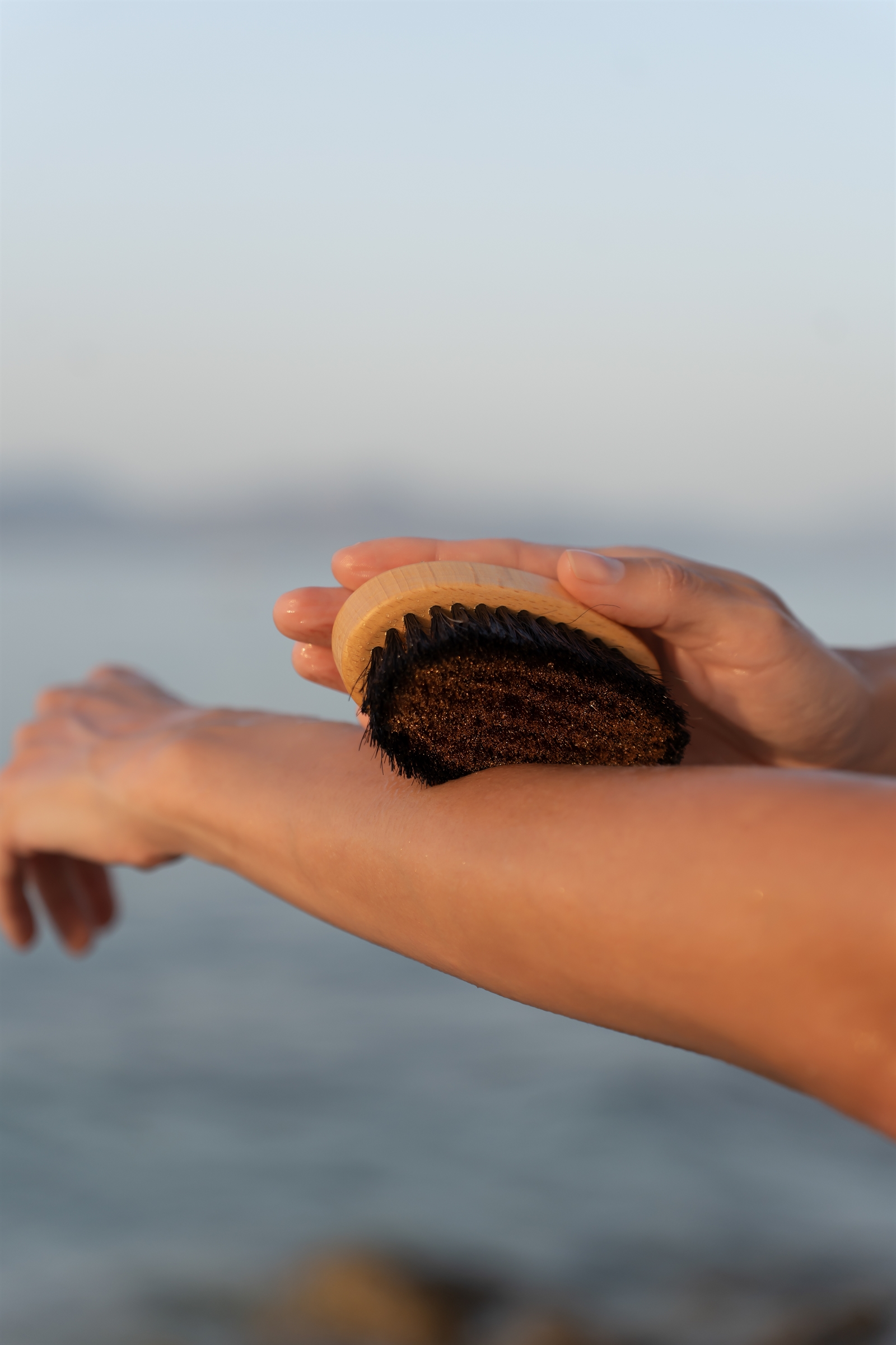 Børsten er specialdesignet til dry brushing og stimulerer hudens cirkulation, understøtter lymfedrænage og kan hjælpe med at fjerne døde hudceller.