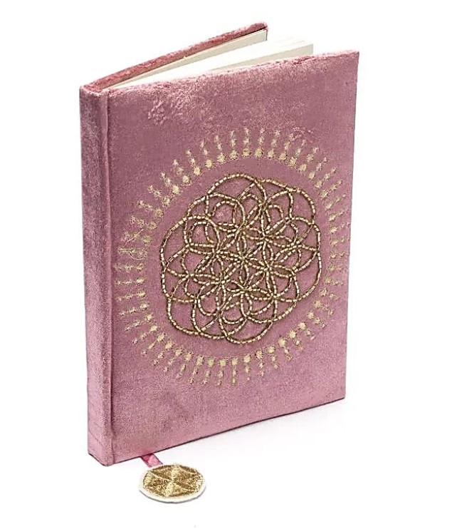 Notesbog i fløjl gammelrosa med Livets Blomst