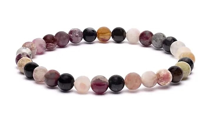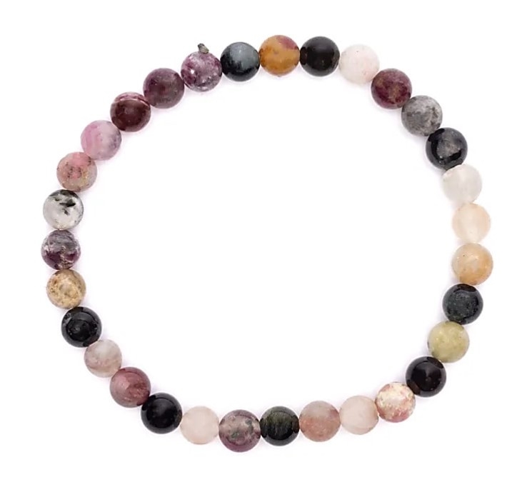 Dette armbånd er skabt med ca. 6 mm turmalinperler i deres naturlige, unikke farver. Den elastiske snor gør, at armbåndet smyger sig blidt om håndleddet og passer de fleste med lethed.