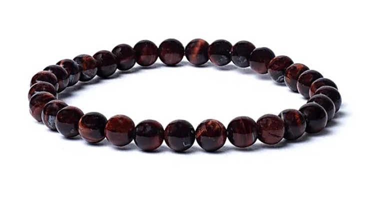 Elastisk armbånd lavet med røde tigerøjeperler i AA-kvalitet.