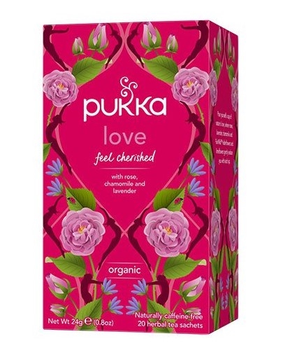 Pukka Love te er en te som stråler af kærlighed. Med en unik blanding af velduftende urter, og sin flotte indpakning udstråler denne te balance, kærlighed og ro.