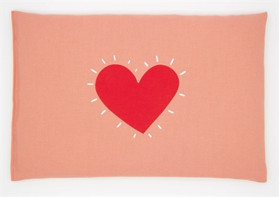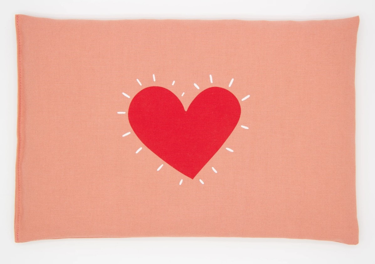 Lille, iøjnefaldende og fuld af kærlighed: Kirsebærkernepude med et rødt hjerte udstråler simpelthen varme, nærhed og gode vibrationer.